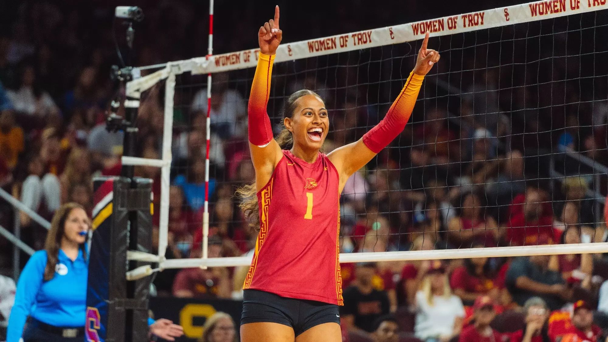 Being from just outside of Los Angeles, Faumuina’s family attended nearly every match prior to USC’s move to the Big Ten. Despite an increase in matches far from home, she embraced the change.